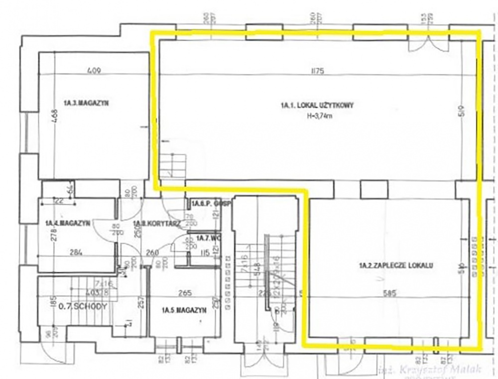 Lokal nr 1A składa się z dwóch pomieszczeń o powierzchni użytkowej: 60,98 m2 (lokal użytkowy) oraz 30,19 m2 (zaplecze lokalu) do własnej aranżacji. Brak sanitariatów, istnieje możliwość podłączenia do istniejących pionów kanalizacyjnych oraz wentylacyjnych i wydzielenie potrzebnych pomieszczeń. Lokal posiada dwa wejścia- od frontu (z witryną na całej długości ściany) oraz od strony zaplecza.