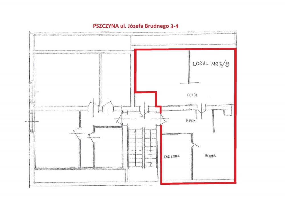 Lokal mieszkalny nr 8 znajduje się na poddaszu budynku wielorodzinnego przy ul. Józefa Brudnego 3-4. Obiekt jest podpiwniczony, ma trzy kondygnacje oraz wewnętrzny teren zielony. Powierzchnia mieszkania wynosi 39,10 m2. Składa się z jednego pokoju przedzielonego ścianką działową, przedpokoju, kuchni oraz łazienki z WC. Podłogi w pokojach wyłożone są panelami, a w pozostałych pomieszczeniach płytkami ceramicznymi. Mieszkanie nie ma balkonu, jednak przynależy do niego piwnica o powierzchni użytkowej 1,60 m2. Nieruchomość wyposażona jest w urządzenia infrastruktury technicznej: sieć wodociągową, kanalizacyjną, elektroenergetyczną oraz gazową.